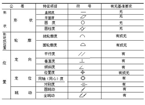 標準gb/t1182-1996《形狀和位置公差》中規定,形狀和位置公差共有14個項目,其公差 征項目的名稱及符號見下表。